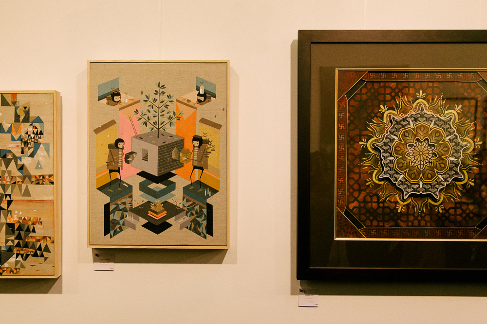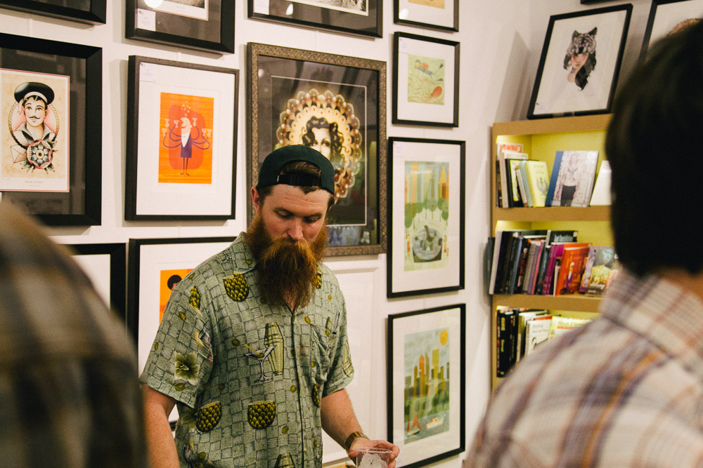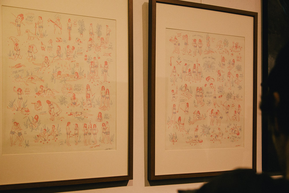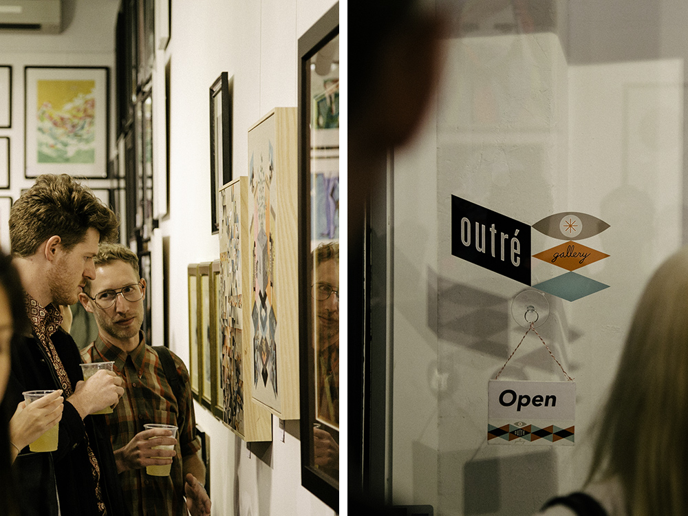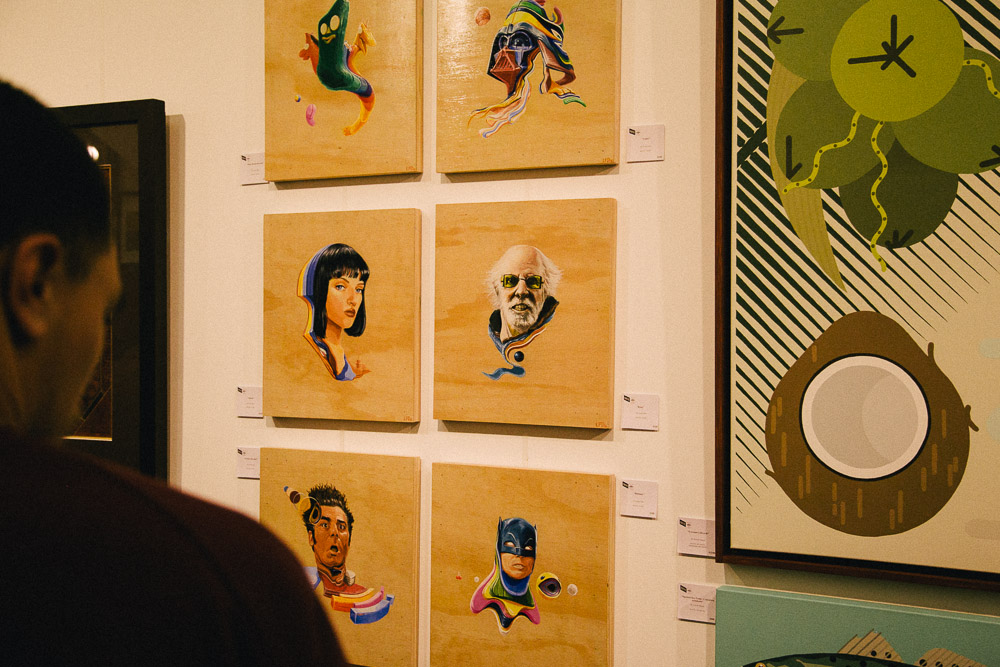 Last Friday we went down to William St for the opening of Outre Gallery’s new exhibition Loco Locals, featuring a number of local Perth artists showing off their mad skillz and wares. It was a busy evening! The already cosy Outre Gallery was jam packed full of art fans eager to see new works from their favourite artists. As usual, I couldn’t tear my eyes away from Kyle Hughes-Odgers’ pieces and had to remind myself about our hefty mortgage and Jinn’s looming 30th birthday to prevent myself from puchasing (another) one! However, all the pieces of art were top notch and I’m sure they won’t stay unpurchased for long.