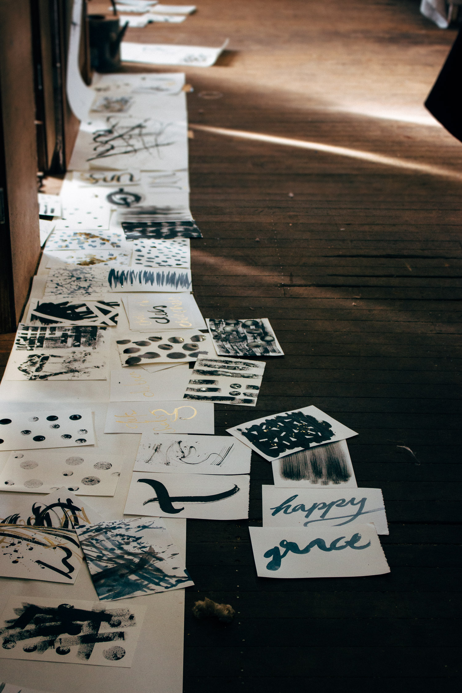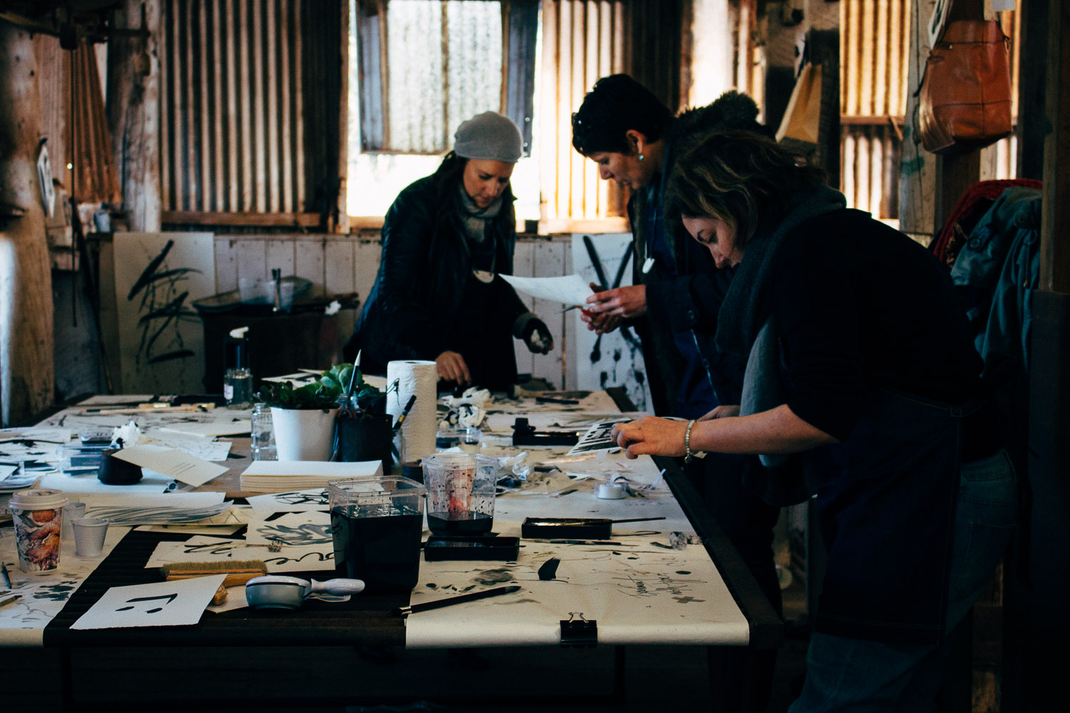 What an undeniable success the entire day was! We joked over lunch that it really should be a two day long Cranmore Winter Camp, but we weren’t really joking…I really didn’t want the day to end. We brought home my very own portfolio of ink drawings and a personally arranged vase of some of my favourite flowers, a new Tasmanian oak laboriously shaped, sanded and waxed by Jinn, and a screen-printed tea towel that he literally made with his own blood and sweat (left index finger vs lino cutter). But more than that, we came away having had the chance to meet and connect with a bunch of really great folk who have a heart for championing the local artisan and a huge appreciation of how much work goes into what they do.
