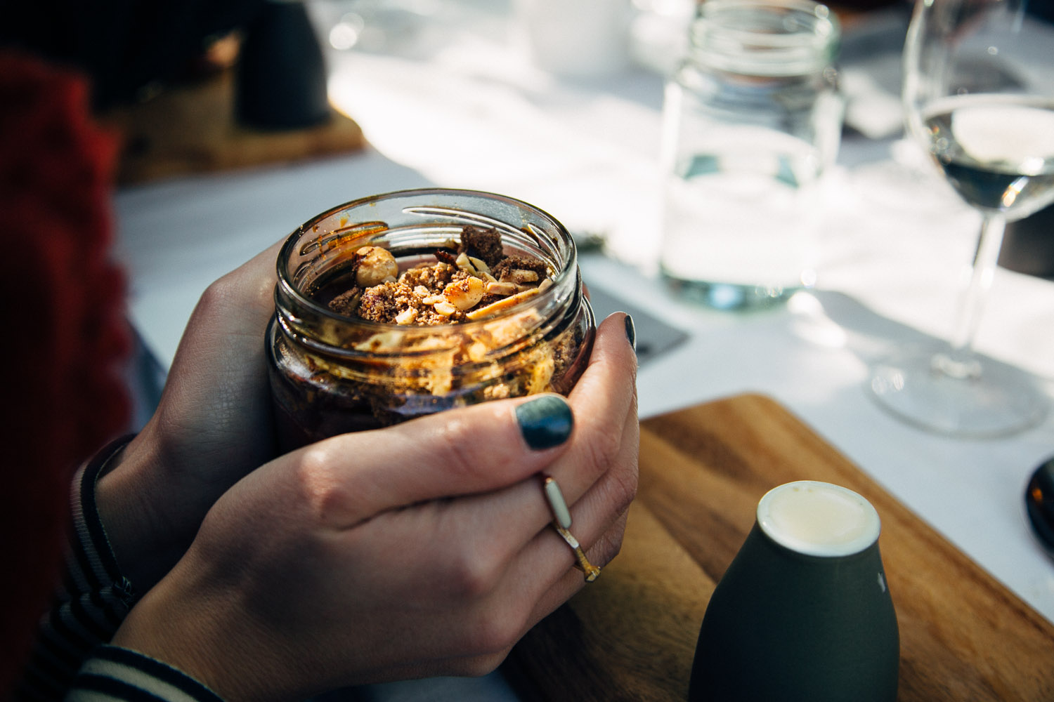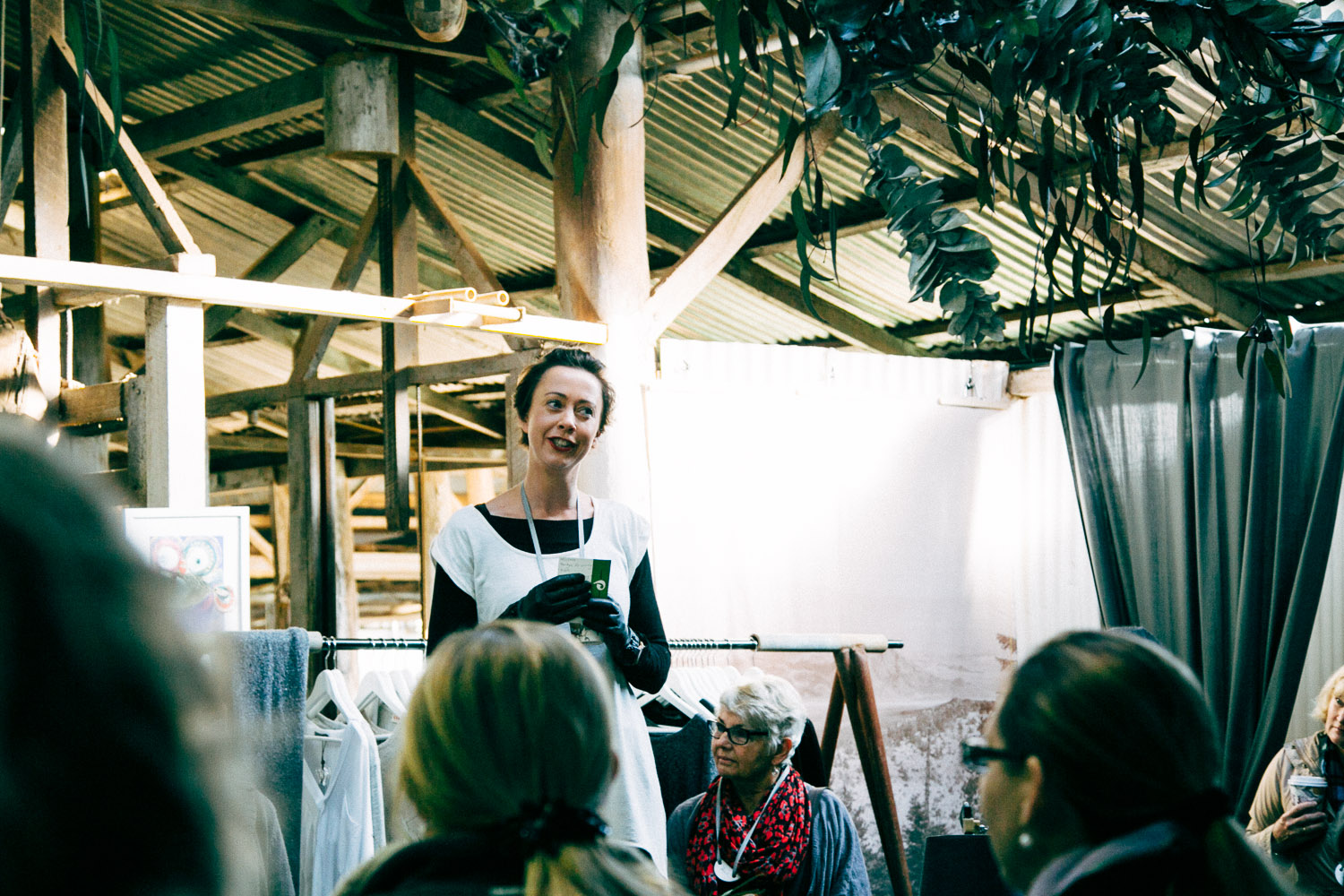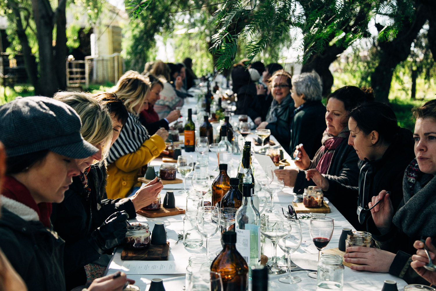 The workshops gave each of us the opportunity to learn from a local expert and were highly participative! During Rebecca’s floral art class, we traipsed around Tracy’s vast property foraging (read: pillaging) for beautiful foliage and wildflowers, incorporating them into our very own floral masterpiece which we got to take home. Mine is still going strong! All this physical and brain activity was sustained by a regular flow of hot drinks and a sumptuous long (loooooong) table lunch set under the branches of some pepper berry trees and catered for by the culinarily-gifted Jodie Fairclough from To The Woods Cafe and Ferngrove Wines.