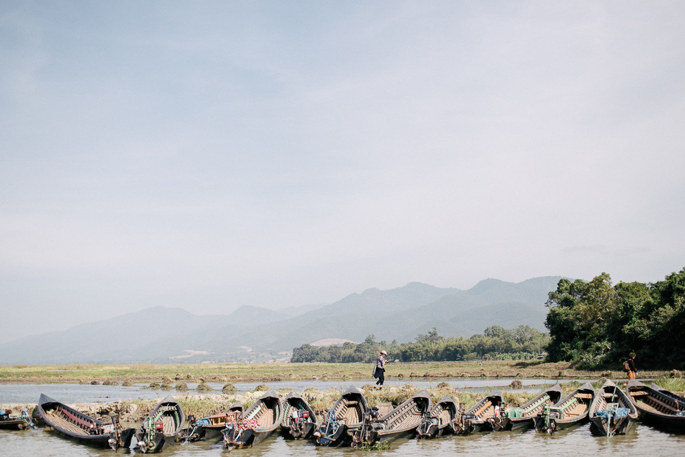 With flocks of friends currently flitting around the world on holidays, it was inevitable that I’d return to take a look at our time spent exploring Burma. After Bagan, Inle Lake was most definitely another favourite destination of ours. It wasn’t just the endlessly serene and entirely unique waterscape that enthralled us, but also the chance to see the people, known as the Intha (literally, “sons of the lake”) living in and around the enormous body of water itself. Living in bamboo houses propped up high out of the water on stilts, the Intha have historically depended on the lake for everything. And this lifestyle is still evident this present day – you’ll see fishermen in tiny boats, some still employing the unmistakable leg rowing style found nowhere else in the world (some are legit, some just do it when tourists are whisked by), you’ll see rows of tomatoes and vegetables being cultivated atop beds of floating reeds as if on land, and people living life so naturally entwined with that of the lake, hopping blithely in and out of boats, going shopping, brushing their teeth, washing their clothes, and I dare not think what else.