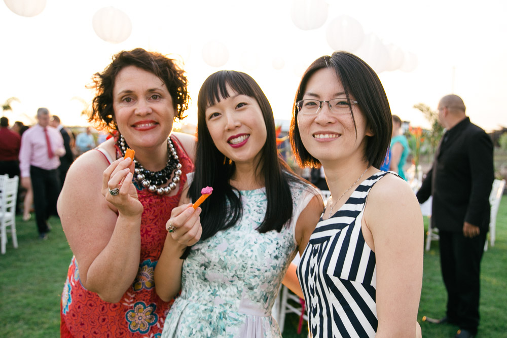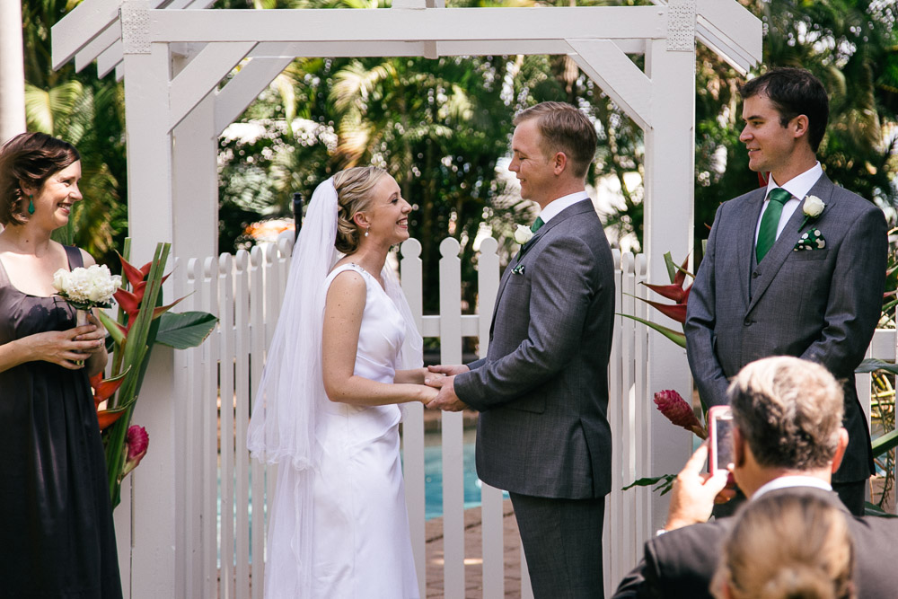 Looking over these photos fills me with such warmth and happiness thinking about the events of the weekend in Darwin just past! The gorgeous garden ceremony surrounded by palm trees and loved ones, the golden kiss of the sunny weather, the sumptuous dinner under nature’s own canopy of stars. And, uh, did I mention they had a DIY sundae bar!?!? Future wedding planners, take note!