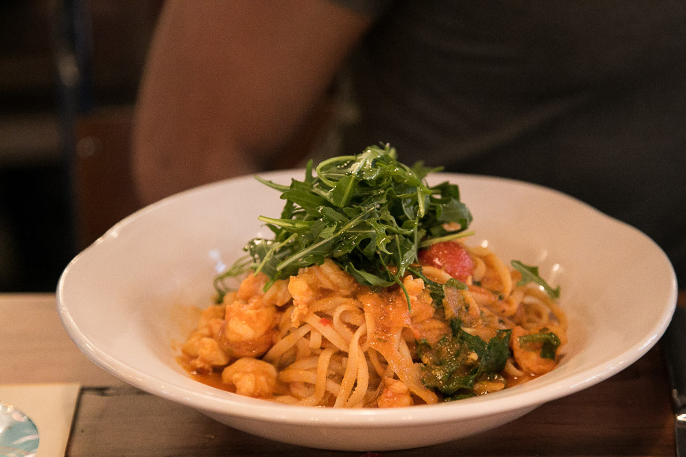 I love the vibe of the place, I badly want those pendant lights in my own kitchen, and it has a nice cheery hustle and bustle to the place, not pretentious at all. The place was packed (people line up for hours just to have dinner here) so I expected our food to take a while – but it didn’t! We started off with a few share platters, each overflowing with bundles of goodness. Yummy crisply fried morsels of fish, tasty cockles, aubergine caponata, layers of prosciutto and bresaola…Mmmm…Yeah, there are no pictures of them because we kind of ate them all before anyone had the chance to get their cameras out!