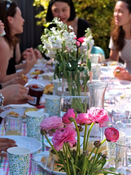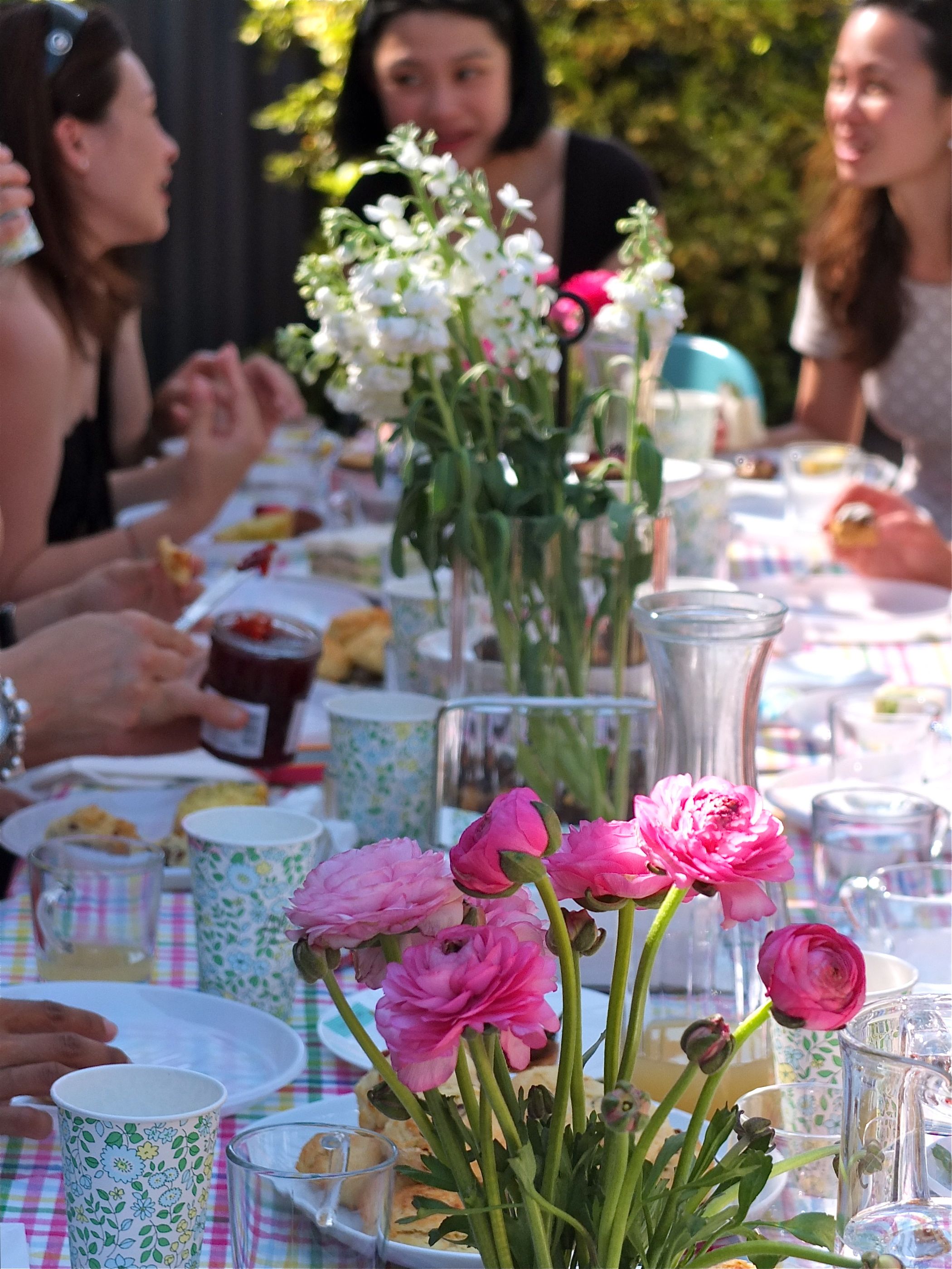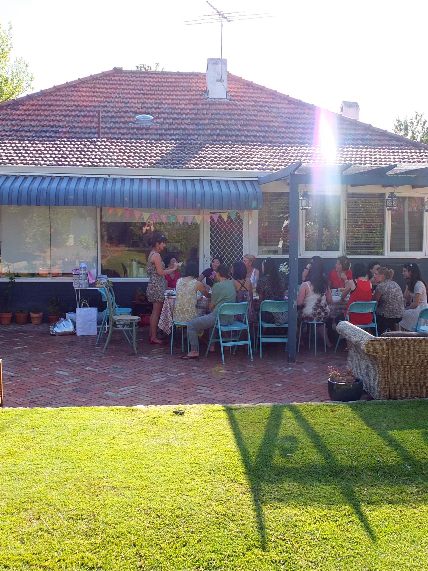 I thought I’d share a few more snaps from that sunny day! Yummy food, happy ladies, and of course – cucumber sandwiches, without which no high tea would be complete. See if you can spot the beautiful Rani dressed in red below. Baby Gabrielle has since been born, both mum and bub are doing well – and yes, photos are forthcoming :).