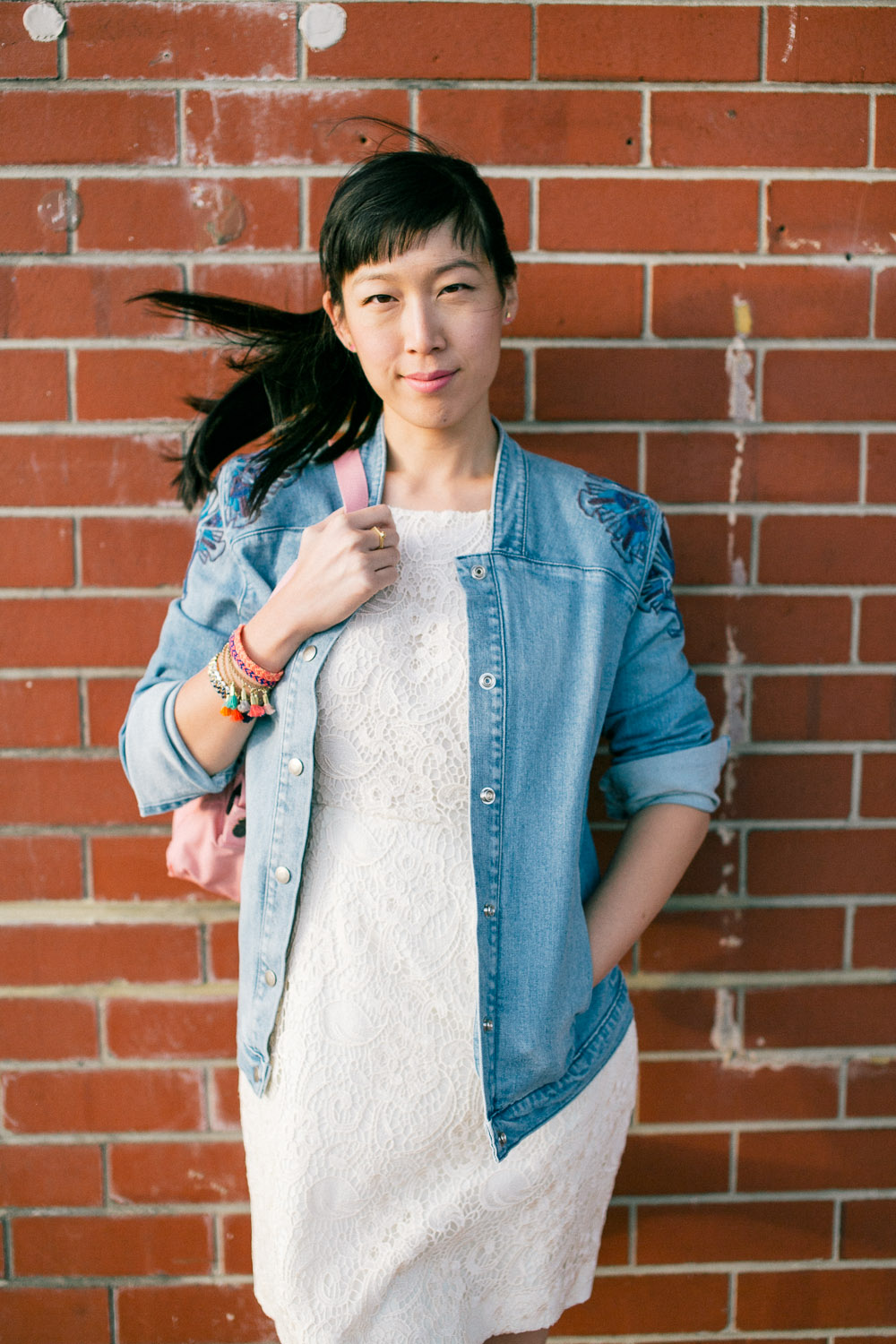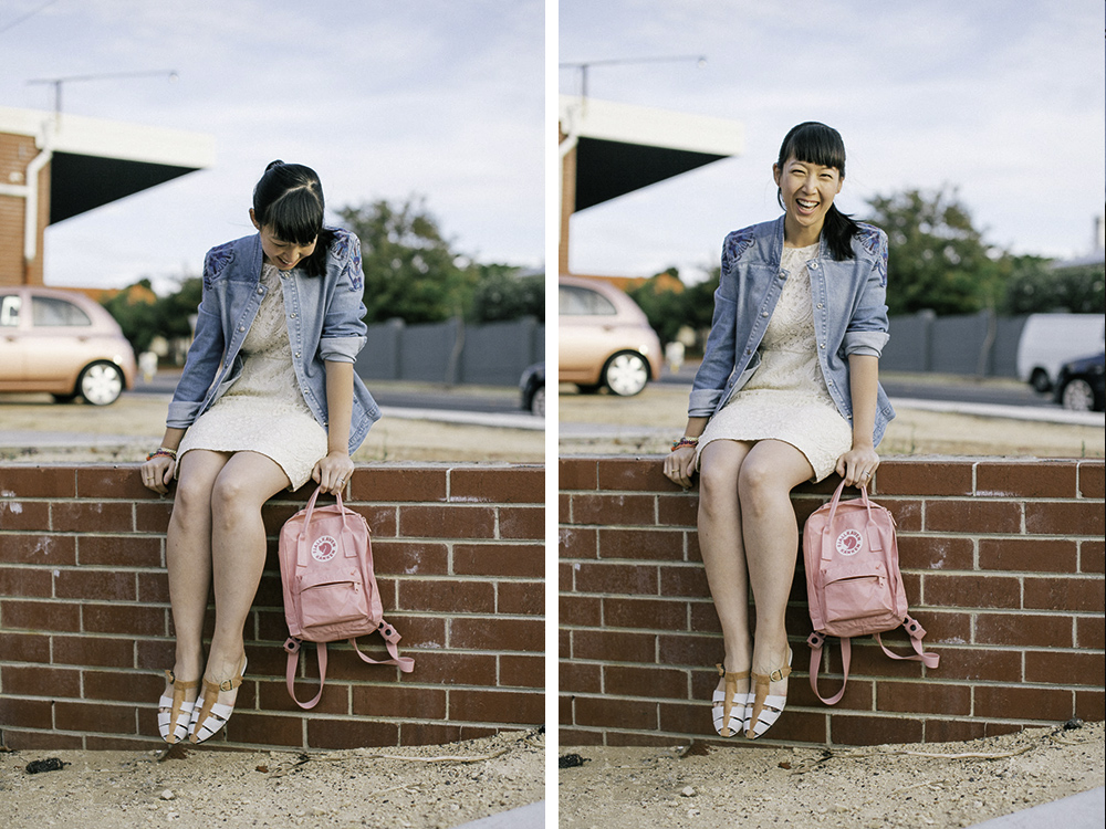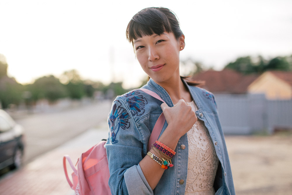 Wearing – Nobody denim jacket, Madewell dress (similar), The Horse shoes, Mini Kanken backpack, Freckle & Co tassel bracelets, Alister Yiap hexagon ring, vintage sapphire bracelet (thanks Mumsy!)