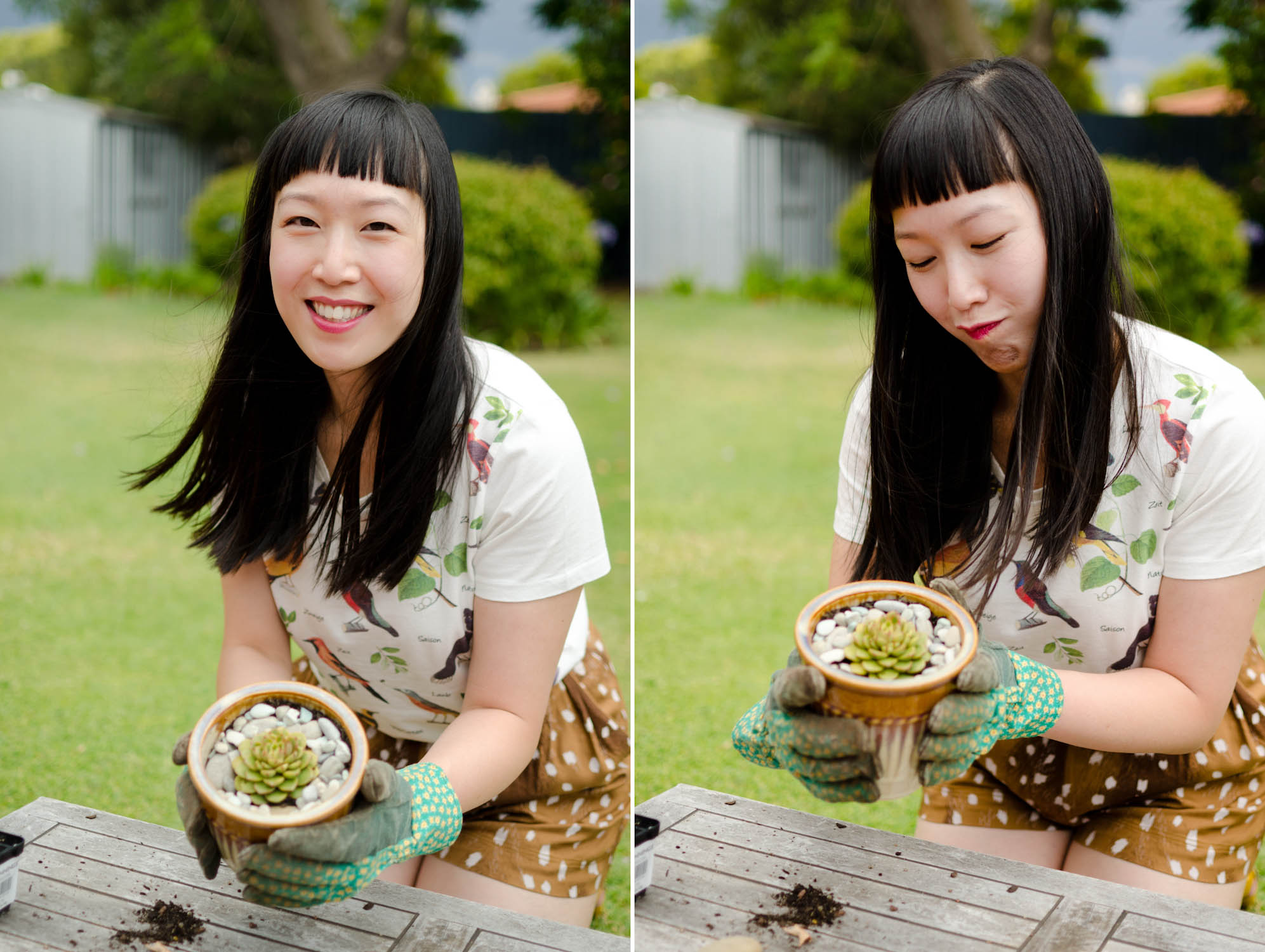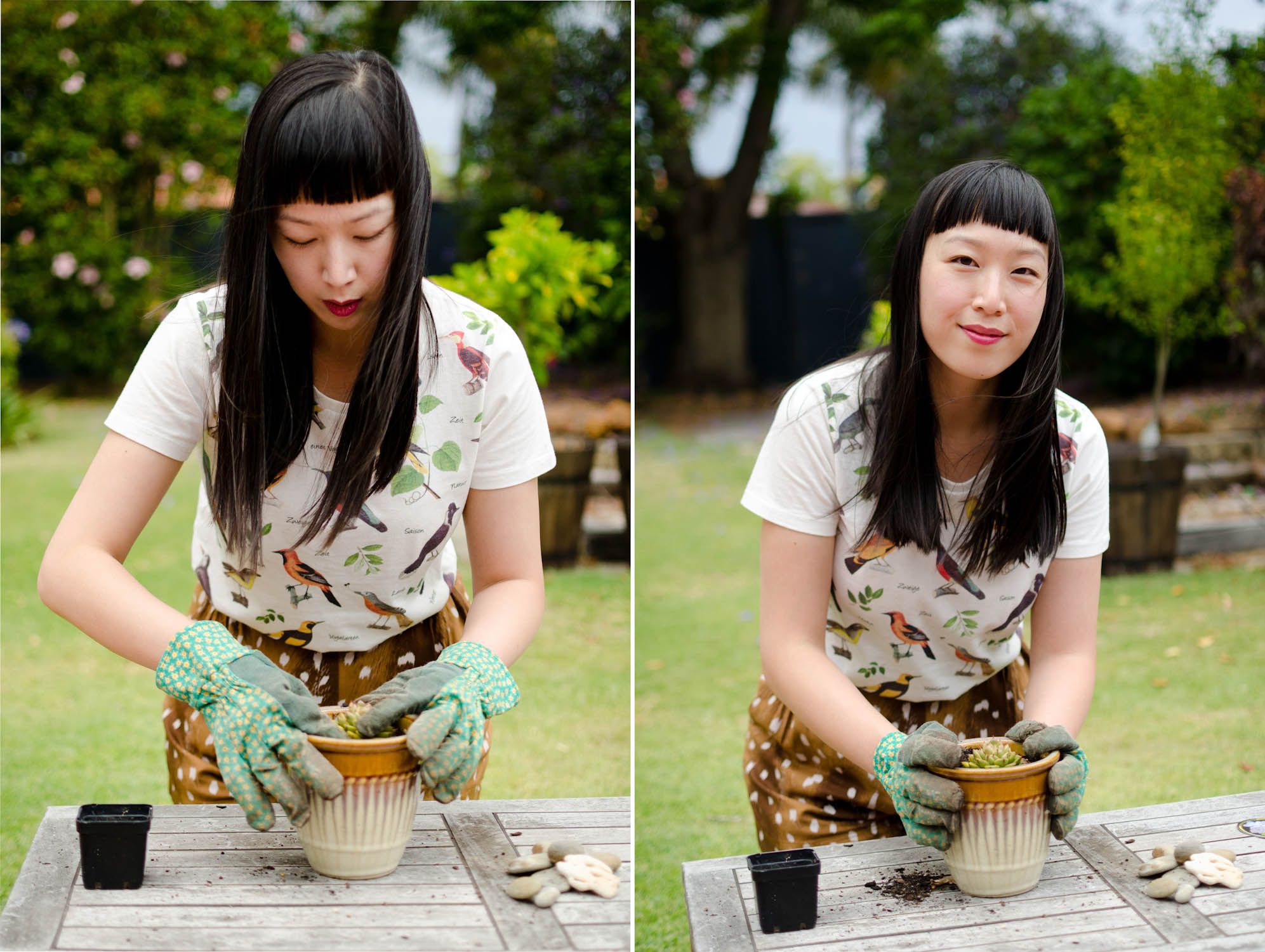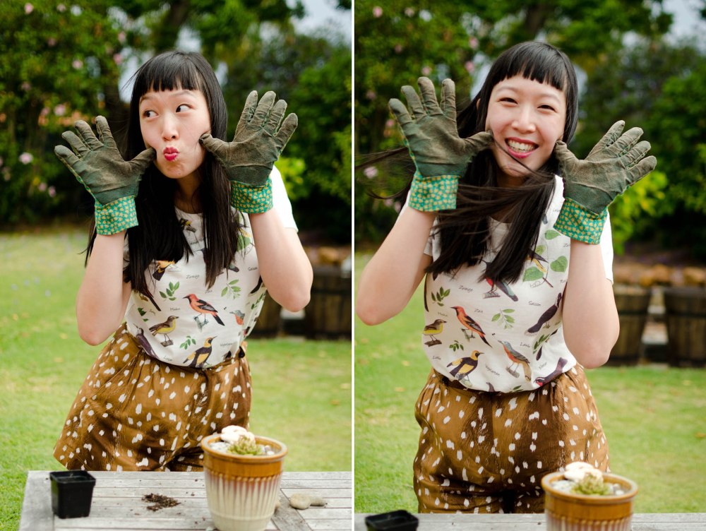 ***What I’m wearing – bird print t-shirt by Design Tshirts Store graniph (I reckon this is pretty cute) via Pigeonhole, Bambi print shorts by Sretsis (check out their amazing cherry print current collection here), cheap-o yellow sandals from the Ladies’ Market in Hong Kong (*sigh* aren’t these nice…), amazing sexy gardening gloves via Bunnings (yeah Bunnings! Seriously almost as bad as Sephora for its deceptive money-sucking abilities)