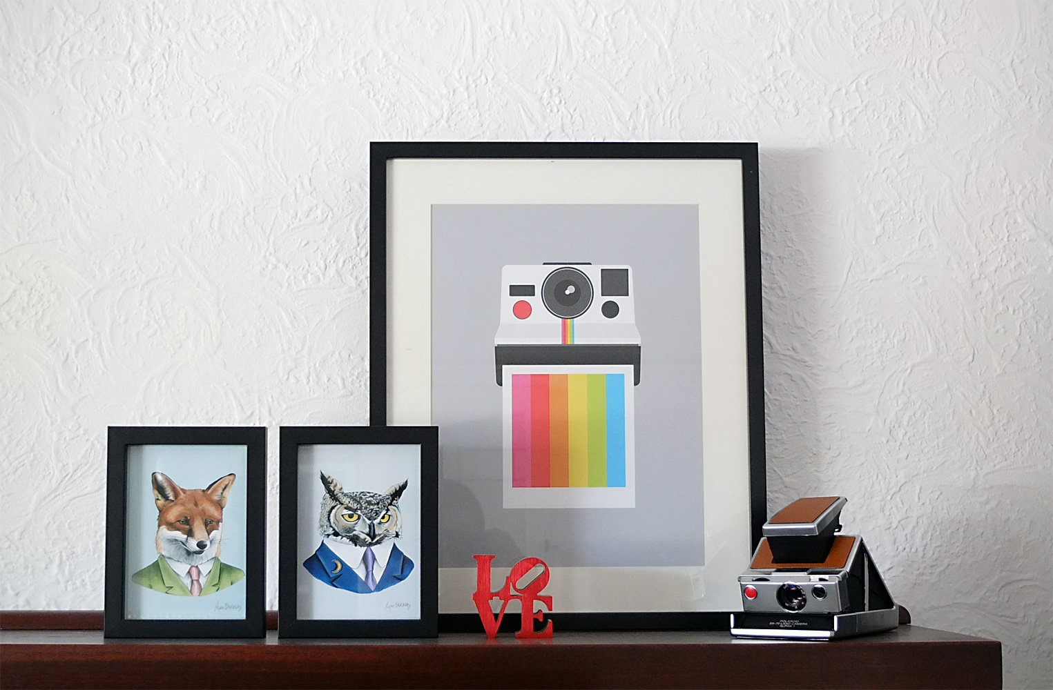 3. Decorating our house – prints from here and here, LOVE statue from MoMA store (no longer available!), vintage Polaroid camera from ebay