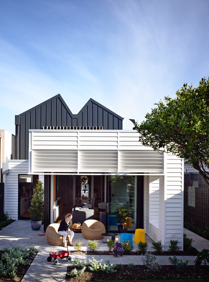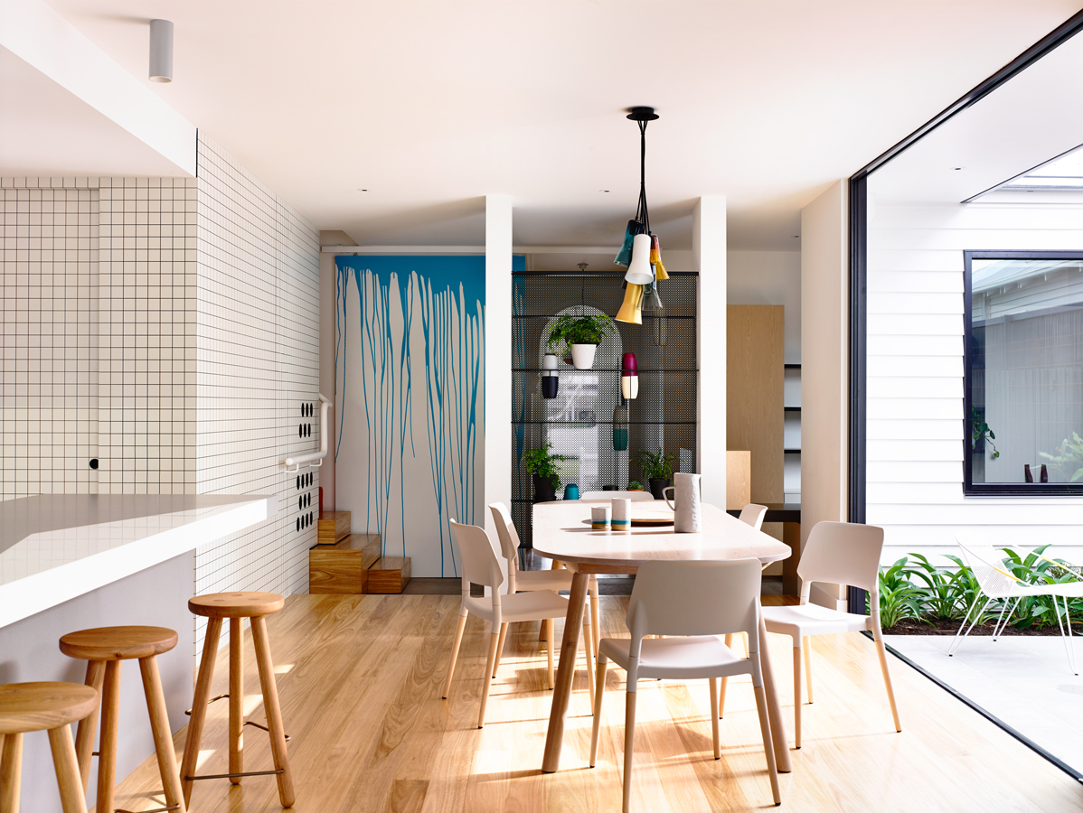 We came across this delightful house on Desire To Inspire the other day. Designed by Techné Architecture + Interior Design, it is a wonderful conversion of a double-fronted weatherboard house into an amazing and inviting space full of colour and energy. I love how the street frontage is subtle, with only a cheeky bright blue door and a small amount of metal cladding visible to hint at the impressive structure within. They have managed to add four extra bedrooms, an open plan living-dining area and a study, with heaps of life-bringing natural light. And to top it all off, the interior design and furniture is positively mouthwatering! (Excuse me whilst I rescue my laptop keyboard from my drool…)