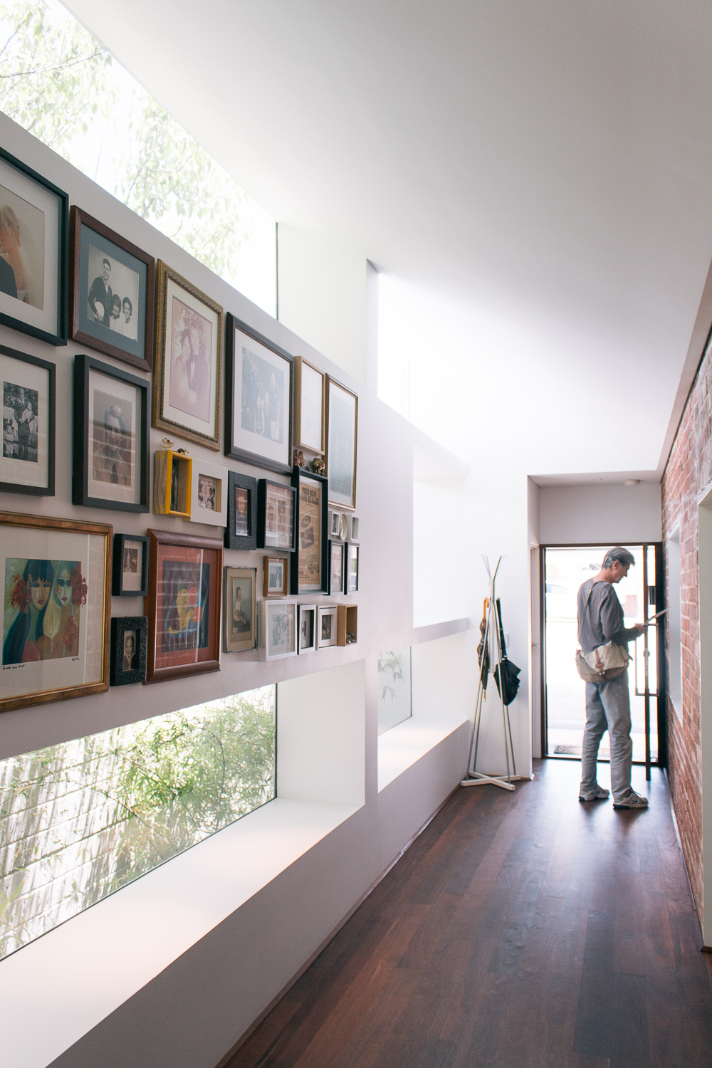 This home, by Mountford Architects, is a great example of a creative marriage of old and new. By adding a corridor to the side of the existing home, the space is opened up without having to bash and crash through old existing walls. We both also really love the way that the corridor not only is a functional component, but is also a personal gallery of sorts for the family that lives there.