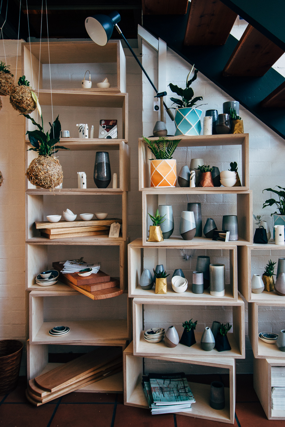 Something else that makes Arrival Hall unique is the fact that it is essentially an extension of Lisa and, her husband, Clem’s home, blending and flowing together with natural ease. Browse and enjoy the shop space on the ground floor, give Lexie the dog a friendly pat, then venture up the stairs to be welcomed into the stylish pair’s kitchen and dining area where Clem expertly makes delicious coffees at his Rocket espresso machine. Their warehouse conversion home extends further upwards another two floors and hides away their sleeping spaces and an adorable loft where I can imagine many a Kinfolk and Frankie magazine being read.
