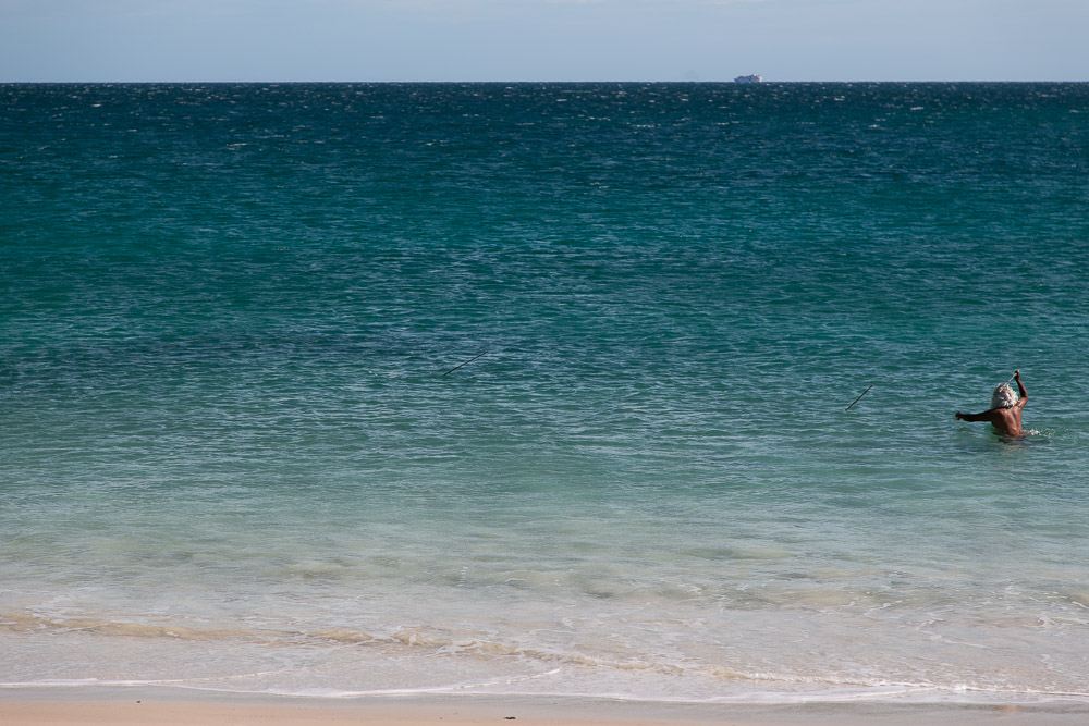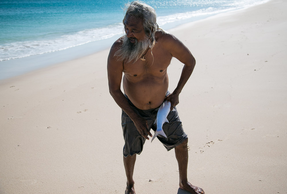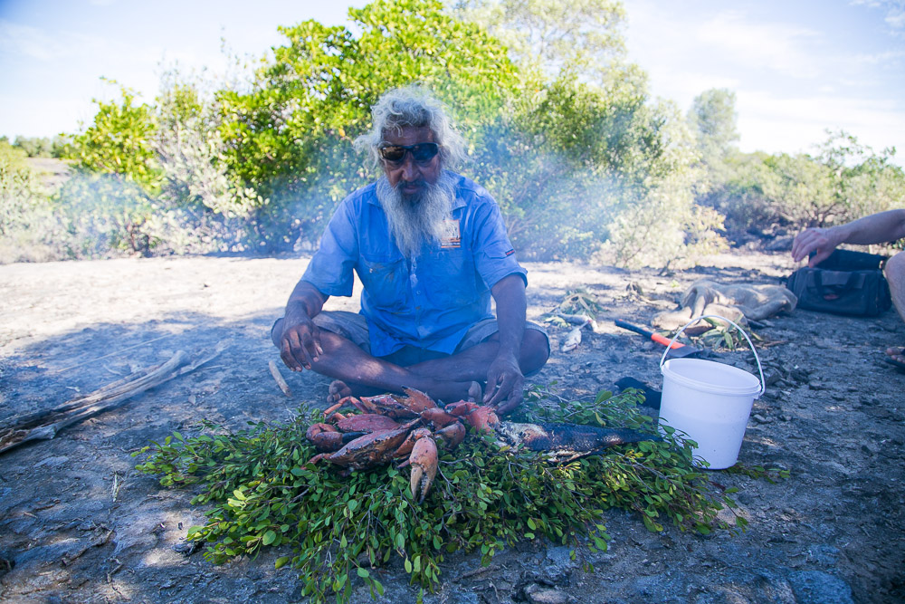 One of the best things we did whilst up at Cape Leveque was join local elder, Brian Lee, on a four-wheel drive tagalong tour. Brian led us along the pristine beach and down to a nearby creek, all the while sharing stories about his Bardi people and the land, and showing us how to spearfish and catch giant Kimberley mudcrabs! Brian was so expressive and enthusiastic. A couple of times he hopped out of his car like a flash, spear in hand, jumping into the surf to retrieve his catch. His face also told many stories by itself, the light in his eyes shining as he explained how his grandparents would have lived in harmony with the land years ago, and his features undeniably showing his Bardi, English and Japanese heritage, testament to the history of this region.