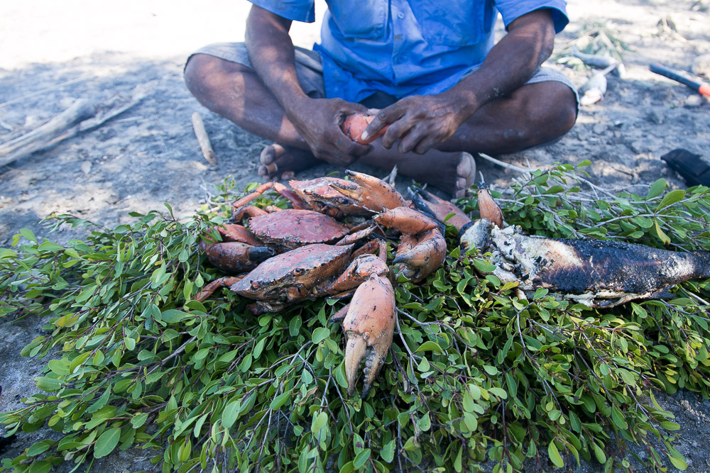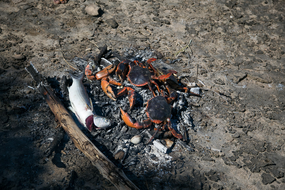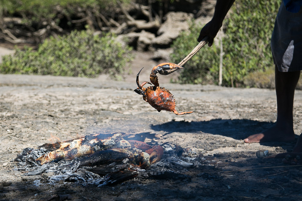 We came to Hunter Creek, traversed its sandy banks at low tide and made our way to the mangroves where the mudcrabs hide out. Expertly, Brian showed us how to extricate these giant crabs from beneath the roots of the mangrove trees before giving us a chance to do the same (quite unsuccessfully!). After a few hours in this amazing wilderness we found ourselves perched on a rocky outcrop, hungrily eyeing the catch from the day: two successfully speared mullet, three giant mudcrabs, and a branch covered in tiny oysters. All were deliciously smoked on a coal fire, and we feasted. I’m not sure I will ever eat crab this good ever again. Ever.