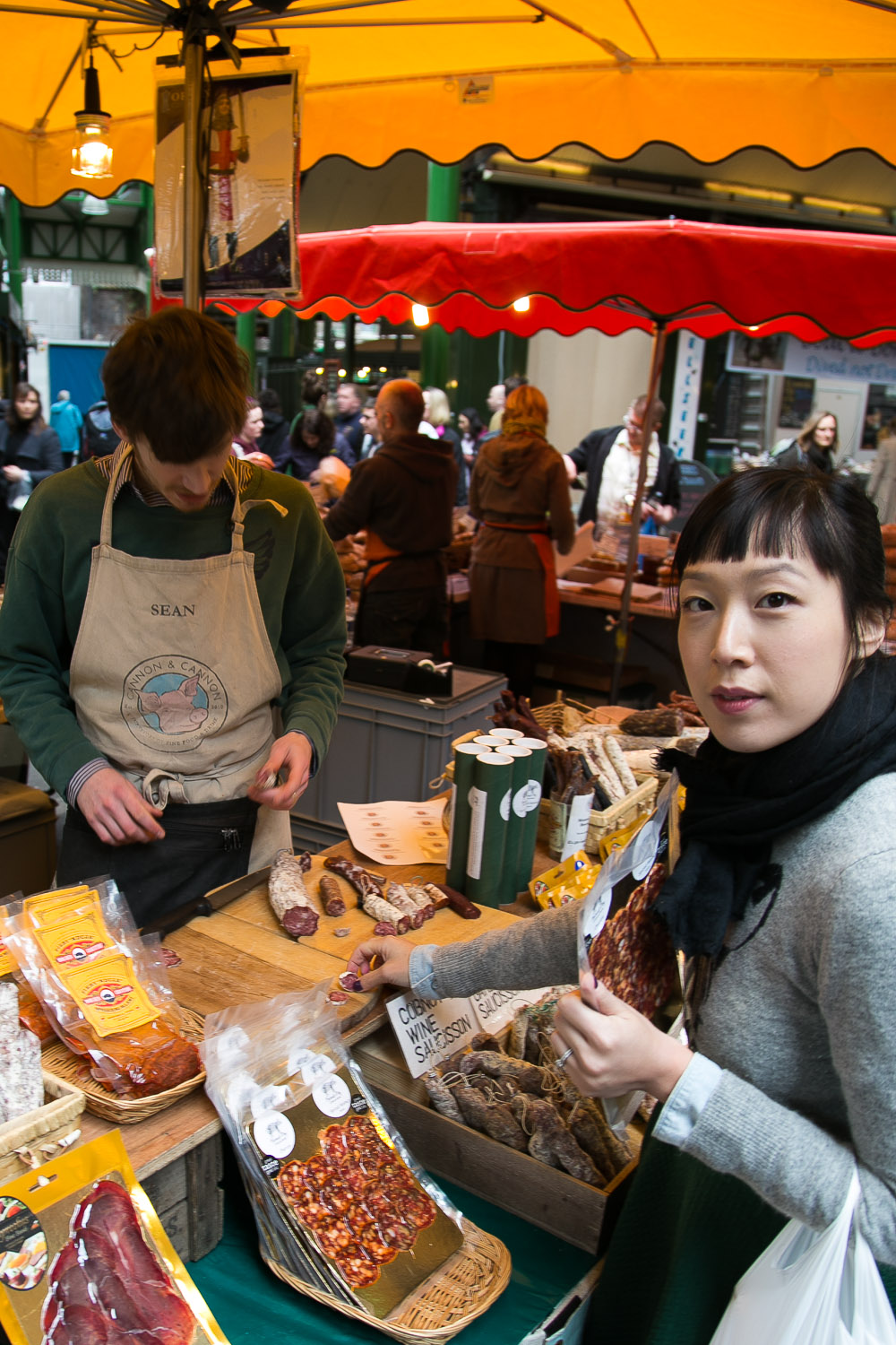 We spent a good two hours here at least, gorging ourselves on the sights and the food. Recommendations? The hot brownies, millefeuille and raspberry tart (pretty much everything) from the bakery that presents itself as soon as you walk through the market’s main entrance off Borough High St (Comptoir Gourmand), the lamb kibeh from the Lebanese stall (we had one, then went back for four), and the chorizo stall. And of course, a cup of mulled wine to wash it all down and warm your chilly bones. The Borough Market is not to be missed!