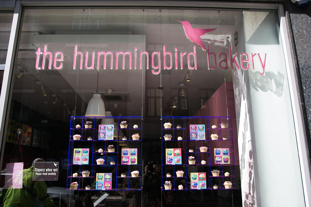 So whilst Jinn was diligently waiting in a very very long line on a very very cold Saturday morning in London to buy some much coveted limited edition vinyls on Record Store Day, I went for a wee wander around Soho! And I was well rewarded by the discovery of the Hummingbird Bakery. It took all I had not to cry, “I’ll have one of everything!”. Seriously, choosing a cupcake was like choosing a favourite child! Finally, one cupcake stood out from all the rest – it turned out to be their available-Saturdays-only Eton Mess cupcake, and it was gooooood. Fluffy light vanilla sponge injected with fresh cream and strawberries, then topped with an Italian meringue icing, crispy regular meringue bits, then more cream and fruit! What a blissful little mouthful that was…