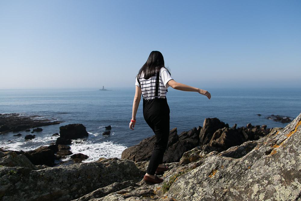Our first destination in France was the incredibly picturesque and tiny little village, Pointe Saint-Mathieu, perched right atop part of the spectacular coastline of Brittany. It gets its name from an old abbey in the centre of the village (sixth century according to legend) which was said to have housed the skull of the apostle Matthew until it was lost in the ocean off the point. After the icy cold of Glasgow it was nice to get out into some sunshine. Look! No coat!