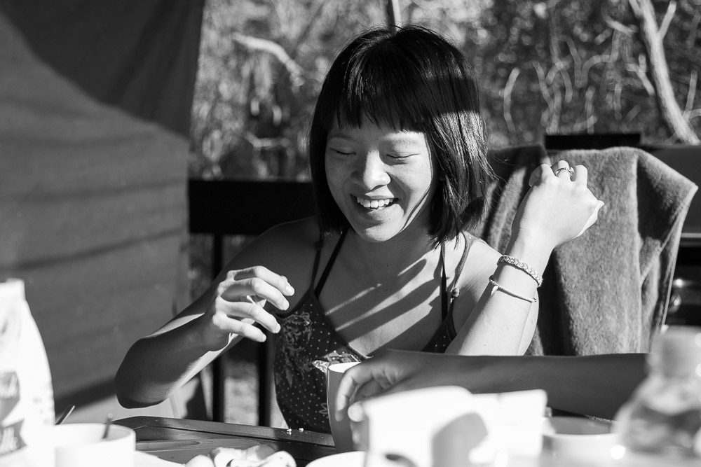 We topped off the sunrise with a beautiful breakfast, prepared on the balcony overlooking the ocean and the trees. Sarah had brought along lots of supplies, so this morning it was to be a scrumptious feast of French toast doused with honey, strawberries and mint. What a treat to be able to spend time with family and friends in the most beautiful of places – the wilderness, the sounds of the ocean, the laughter of great company.