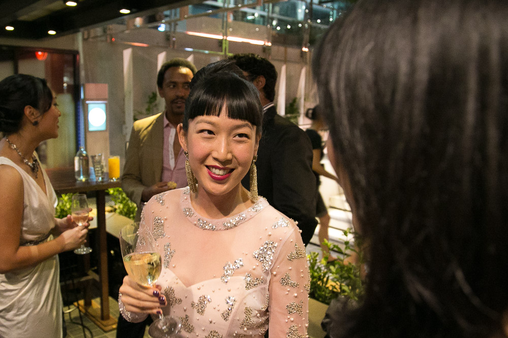 1. Kimberly McDonald earrings, 2. Rachel Gilbert dress, 3. MAC lipstick in Creme d’Nude, 4. Kotur clutch, 5. Charlotte Olympia heels, 6. Sue Lewis chocolates (gifts for party guests!)