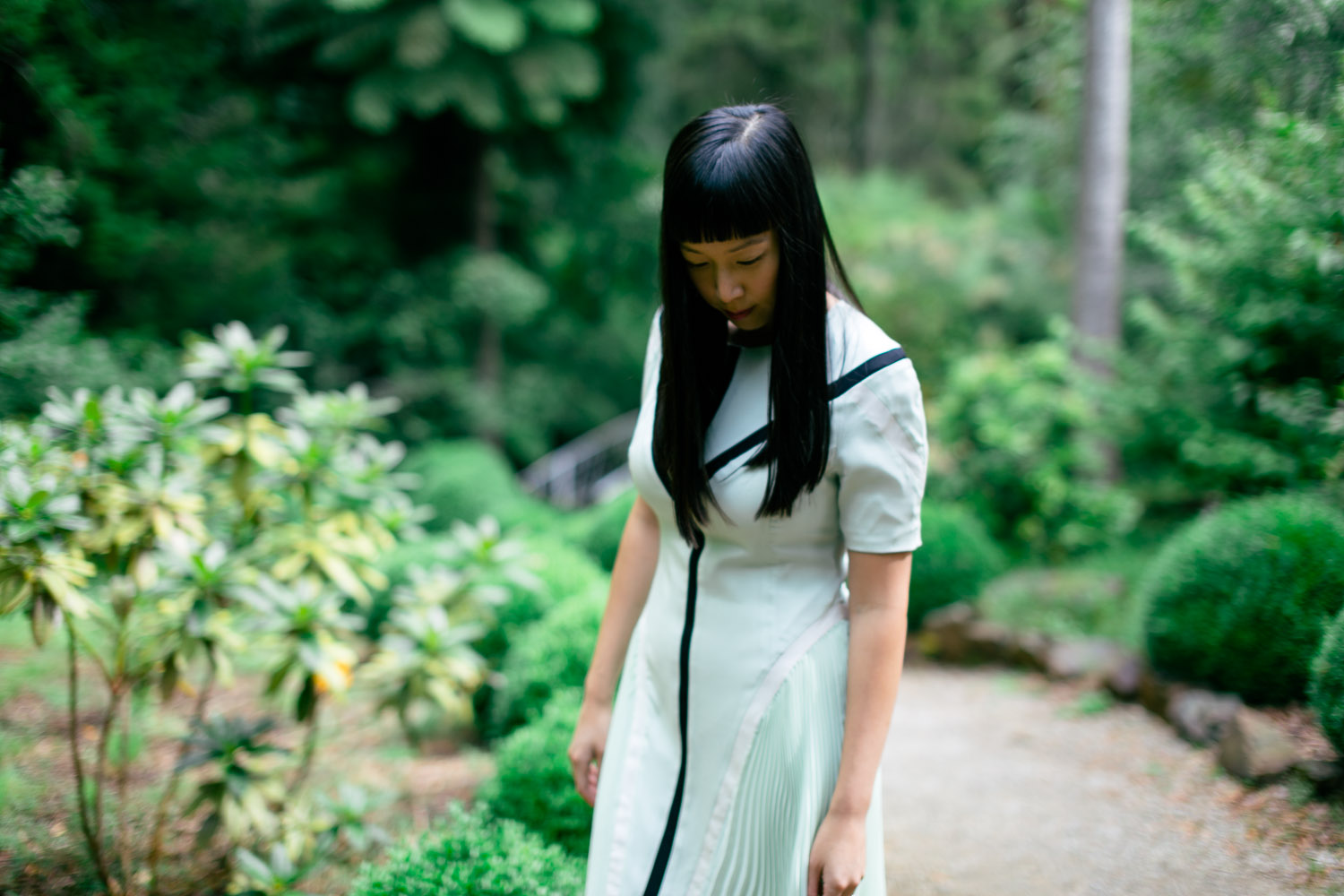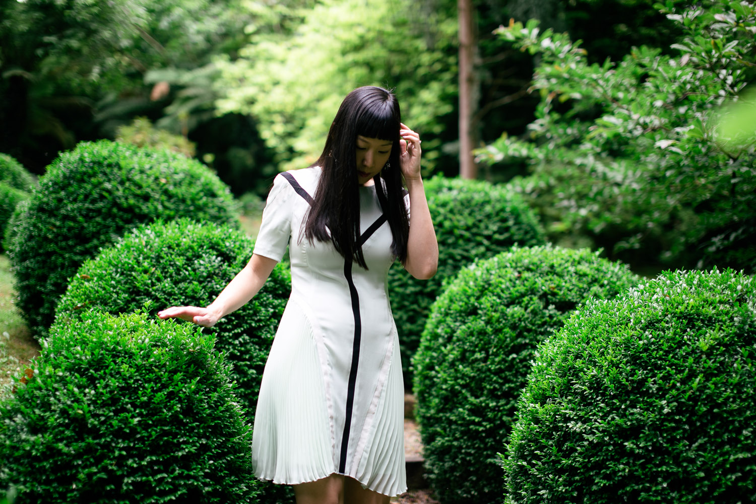 These lovely photos were taken up in the Dandenong Ranges of Victoria, the beautiful setting of a very good friend’s wedding. We snuck out whilst waiting for the bride to arrive to do a little prancing around the gorgeous greenery! The wedding was attended by all my besties from school, and one of them so kindly pointed out that this dress was reminiscent of our old school summer uniform! (See what you think here) I laughed when she said so as I did see the similarities, but I’d like to think my style has evolved a just a little since then! Certainly the untied hair “beyond the collar” and earrings that break the “plain studs” rule are a slight improvement!