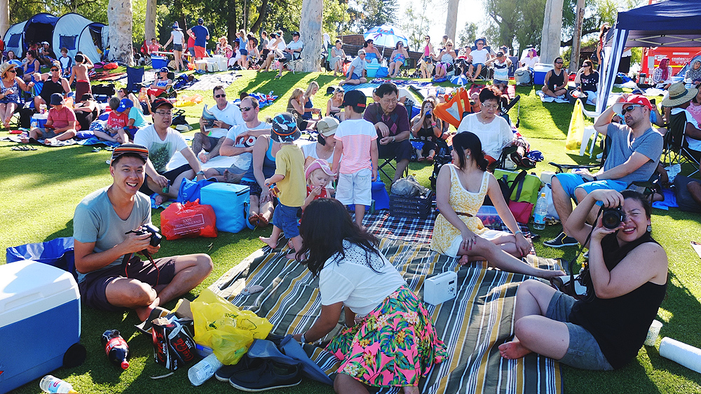 So there was one tiny little downer. We’d gotten to Kings Park nice and early (around 2pm) to stake out our prime piece of grass and view over the river where the fireworks are usually shot. From memory, the fireworks are usually blasted off somewhere very near to Kings Park so that they’re almost exploding directly above you! Unbeknownst to me, their location had changed. So much so that when the fireworks began I (and the other hundreds of people gathered in excitement) realised that we were very very far away. And behind a TREE! A BIG TREE! Haha, it was actually kinda funny. So we amused ourselves with all the crazy kids running around frenetically with their glow sticks and light sabres instead!