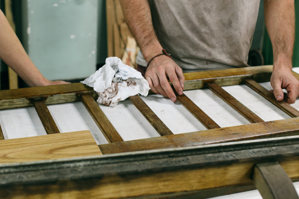 What strikes me most is their utmost commitment to their beliefs and work ethos – to produce beautiful to hold and behold masterpieces of furniture from recycled, reclaimed and found timber. Pieces that will last and stay with you and your family for lifetimes to come and be treasured, continually passing down the ever important message of sustainability. They think not just about themselves but for the future of the generations to come. And did I mention what an amazing little family they have? They make parenting sound like the most organic and natural thing to do! Marie-Clare is pretty much my ultimate Mummy-crush. They are both so clearly in love with being parents of two (plus one soon!) who truly live and breathe what they believe in. Think I’m exaggerating? Well, Milly their three-year-old is already getting in on the action and sanding her own wooden boards with gusto! That’s about as good a sign as any!