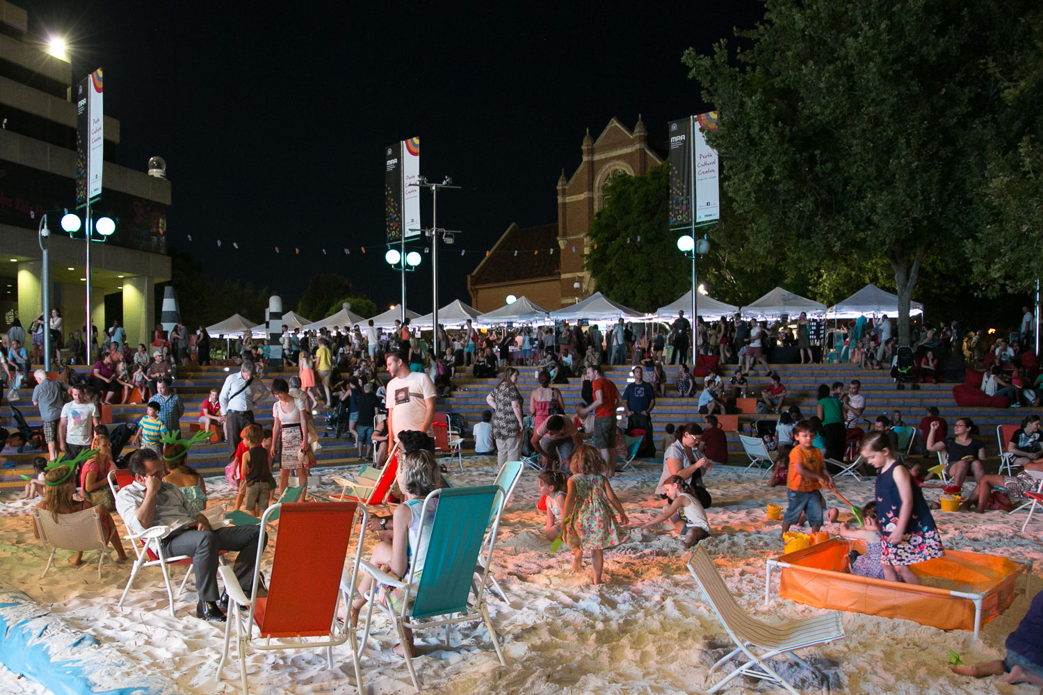 We decided to make the trek back into Northbridge on Friday night for that amazing Christmas gift shopping bonanza that is Illuminites! This year, there was a gigantic manmade beach in the Perth Cultural Centre, complete with deckchairs and places for kids to play, as well as a giant inflatable snow dome and a frozen ice slide inside a truck! Talk about climate confusion!